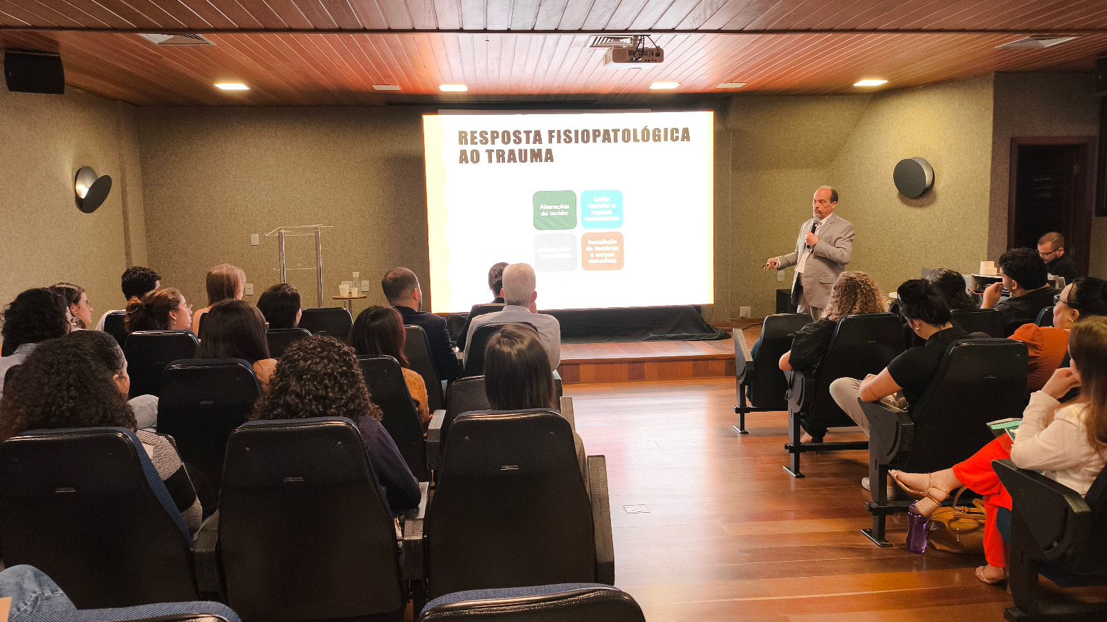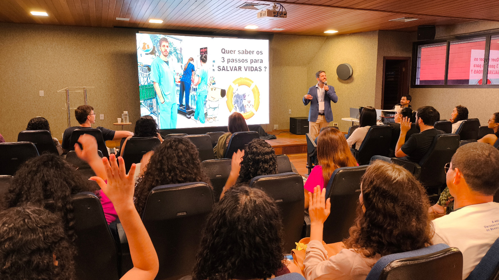 Foram três dias de palestras, com os profissionais convidados: o médico-veterinário Lucas Edel Donato e a bióloga Suzete Rodrigues Gomes palestraram sobre Saúde única. Para falar sobre atendimentos emergenciais em diferentes cenários, recebemos os(as) médicos(as)-veterinários(as) Eduardo Butturini, André Lacerda, Mariana Zanatta, Camila Debastiani, Evandro Zacché, Maura Bittencourt, Daniela Scantamburlo Denadai, Armando de Mattos Carvalho, Gilberto Costa, Caroline Dreibi e Melanie Leite.