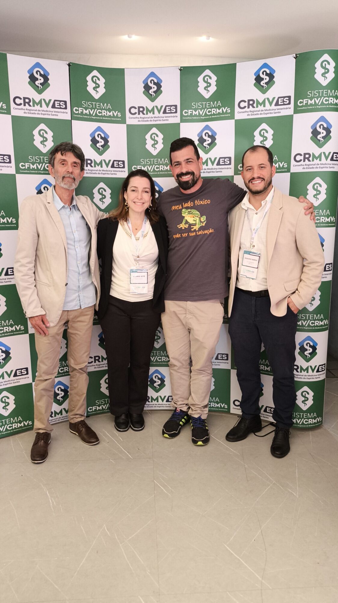 O evento contou com a presença dos membros da diretoria do CRMV-ES: médico-veterinário e presidente, José Carlos Landeiro Fraga (Cacau); médico-veterinário e vice-presidente, Rodolpho José da Silva Barros; médica-veterinária e secretária-geral, Nátali Barbosa Faria; e médico-veterinário e tesoureiro, Augusto Marchon Zago. Também contou com a presença da ex-presidente do Conselho e atualmente conselheira suplente do Conselho Federal do Medicina Veterinária (CFMV), Virginia Teixeira do Carmo Emerich; médico-veterinário e atual presidente do CRMV do Paraná, Adolfo Yoshiaki Sasaki; o Subsecretário de Estado de Vigilância em Saúde, Orlei Amaral Cardoso; servidores de todos os setores do CRMV-ES e parceiros institucionais.